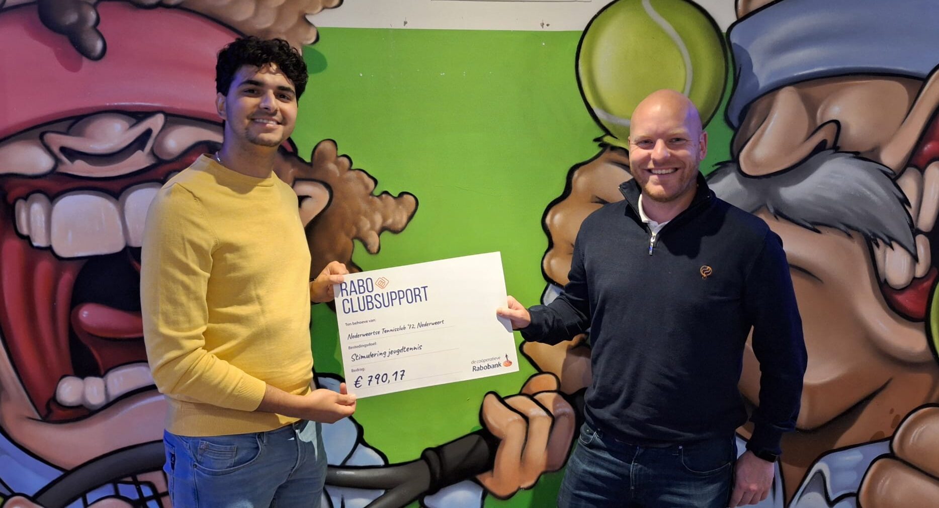 Ook dit jaar heeft onze vereniging weer meegedaan aan de Rabo ClubSupport Campagne van de Rabobank Weerterland en Cranendonck. Afgelopen week is Nidâl Marouan van de Rabobank langsgekomen en hij heeft een mooie check uitgereikt aan Mark Tullemans van ons bestuur.